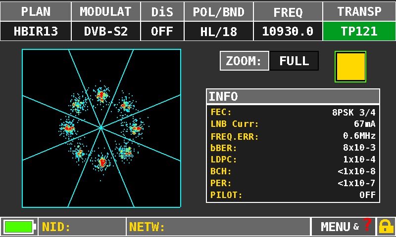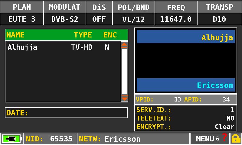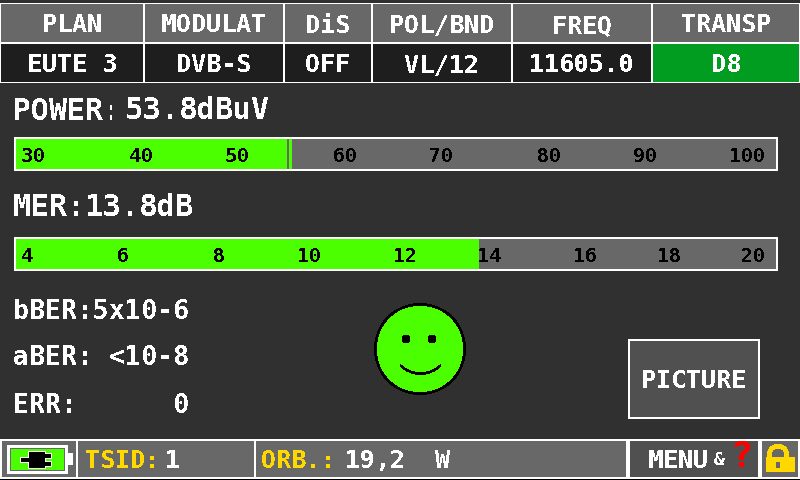 Παντελώς ακατάλληλο για κυνήγι feed. Δεν πρόκειται ποτέ να κλειδώσει - αναγνωρίσει το SR (symbol rate) ενός transponder που δεν είναι στη λίστα με τους προρυθμισμένους. Κατ' επέκτασιν, όταν βρείτε ένα σήμα με τον αναλυτή φάσματος (καλός) στην προσπάθειά σας να κλειδώσετε ένα συγκεκριμμένο δορυφόρο και δεν ξέρετε τί σήμα είναι αυτό, αν δηλαδή βρίσκεστε στις 45°E ή στις 68,5°E, ε, δεν θα το μάθετε ποτέ. Η λειτουργία HELP που διαθέτει το όργανο και υποτίθεται οτι θα βρεί το SR μόνο του, στην ουσία δοκιμάζει διάφορα γνωστά SR, π.χ. 22000, 27500 και άλλα. Δεν διαβάζει δηλαδή το stream.