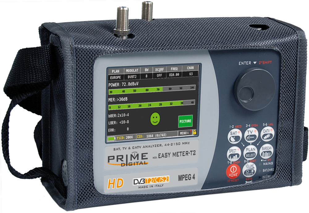 HD ANALYZER, 47-2150 MHz, DVB-S/S2-DVB-T/T2-DVB-C, MPEG-2/4 H264, Analog TV, Constellation & Spectrum, CVBS Video Input